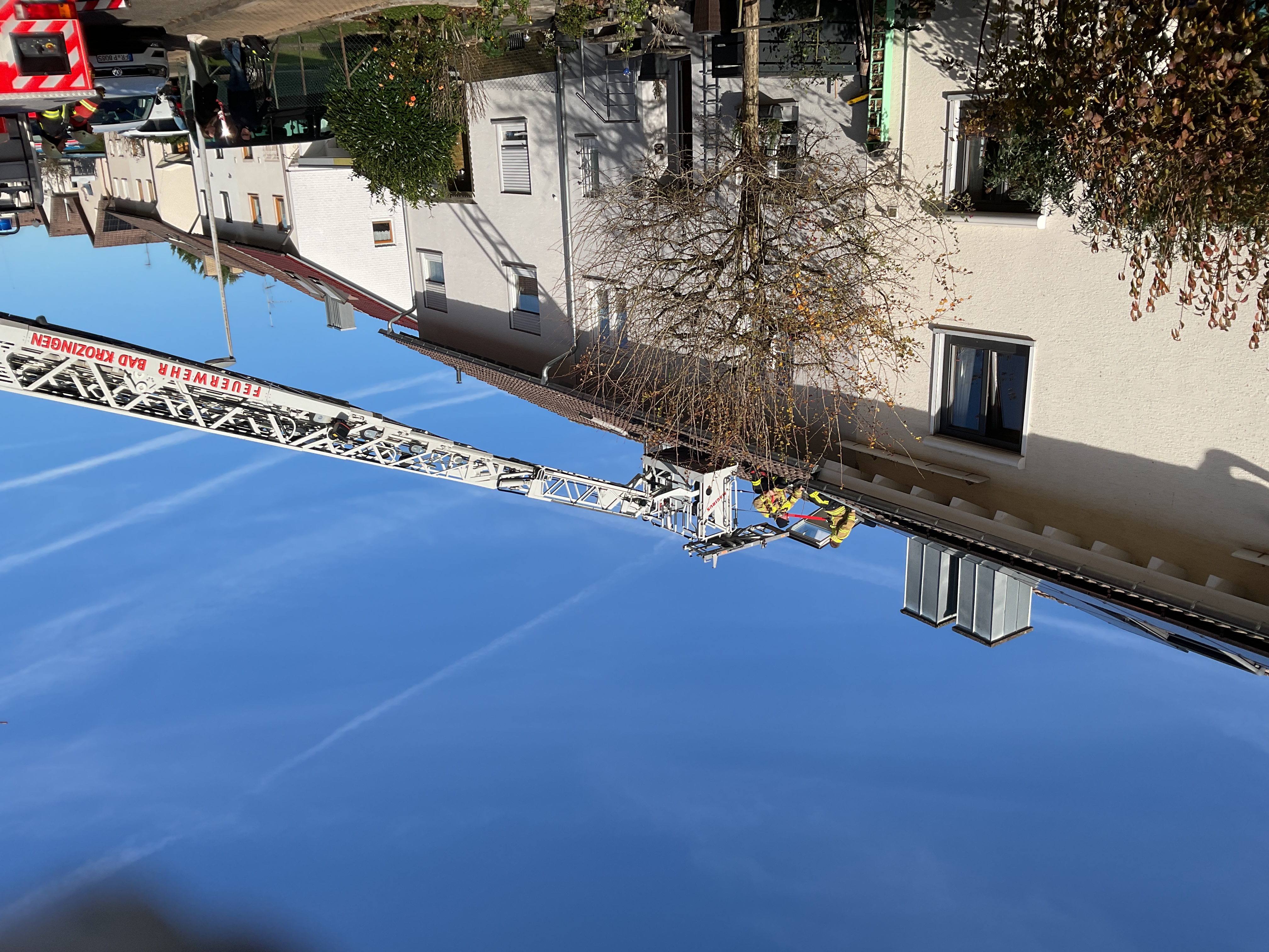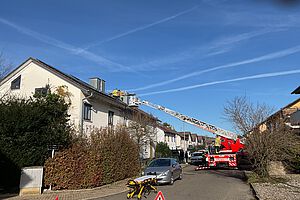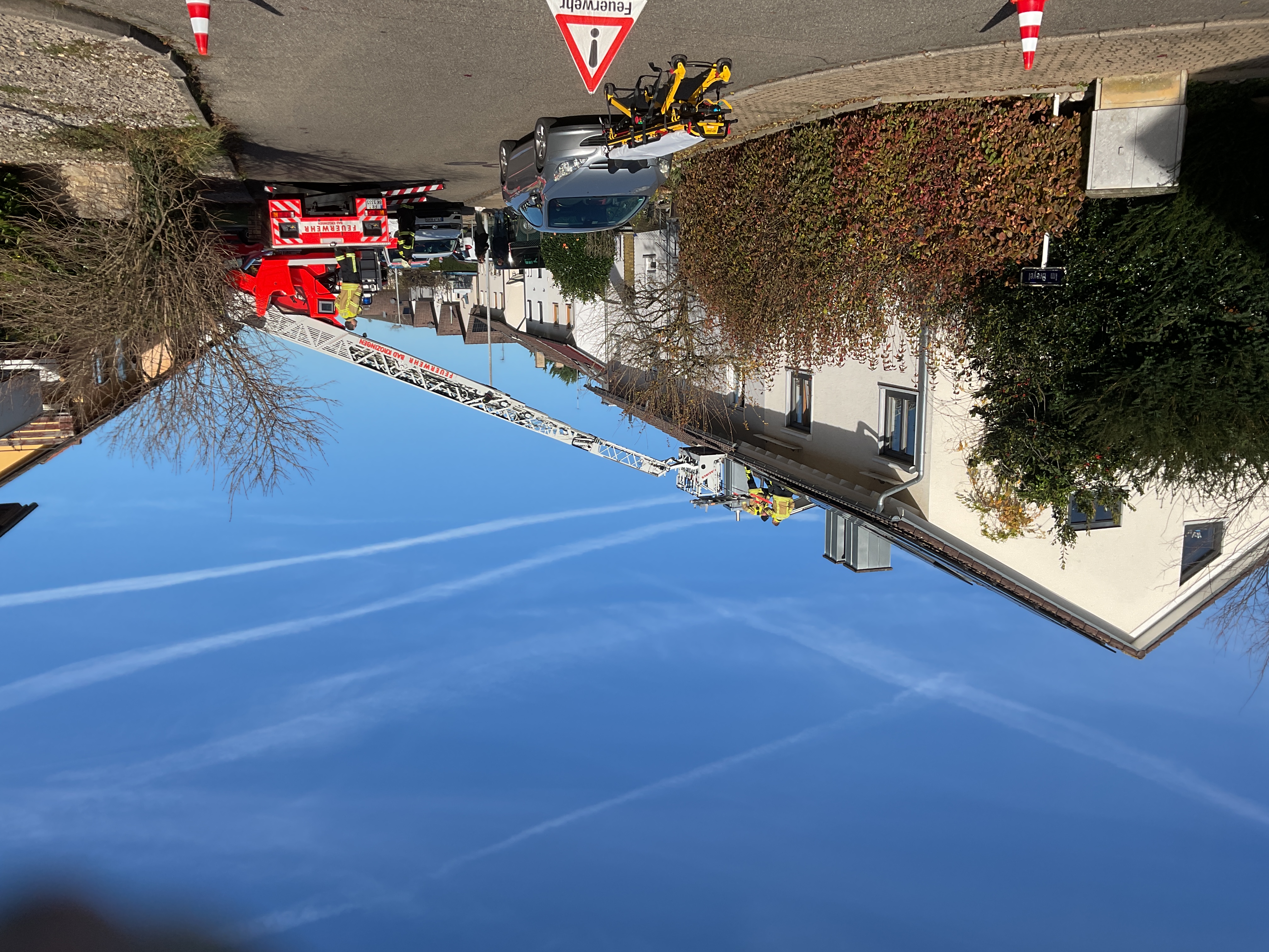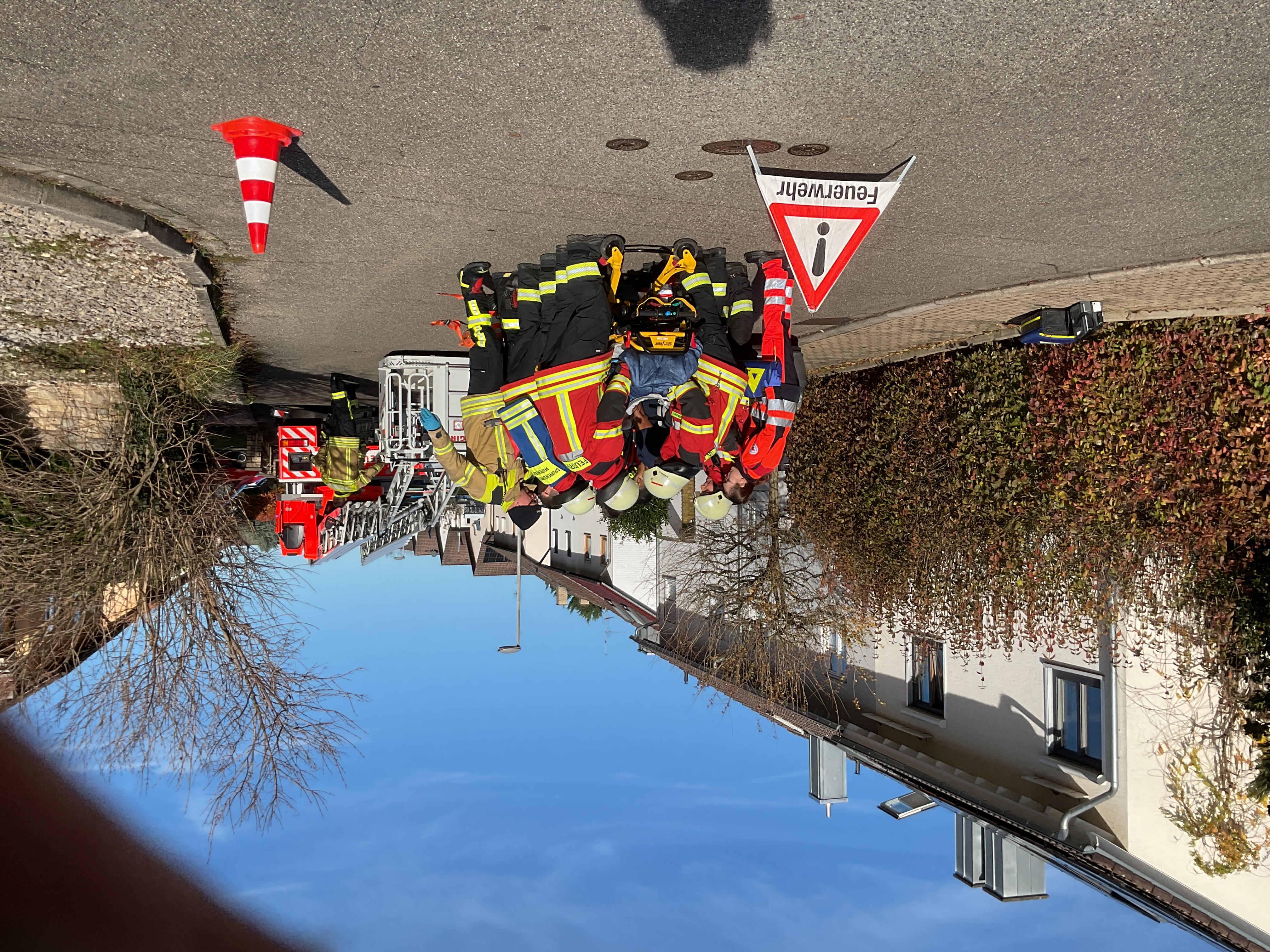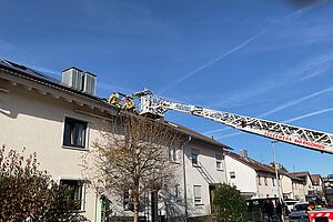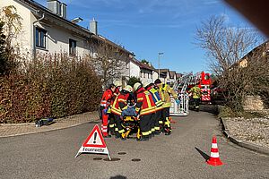 Ein männlicher Patient musste schonend aus dem Dachgeschoss eines Reihenmittelhauses über das Dachfenster im 2.OG geborgen werden. Mit Unterstützung der Drehleiter der FW Bad Krozingen konnte der Patient nach Stabilisierung durch den Rettungsdienst mittels Schleifkorbtrage und der Drehleiter dem RTW übergeben werden.